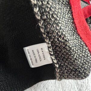 Novica Women's Black Red Alpaca Wool Poncho Cardigan Sweater Artisan Knit Cozy
