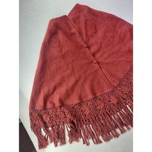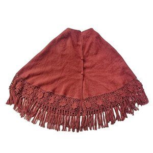 Novica Women's OS Alpaca Acrylic Rust Red One Button Poncho Crochet Fringe Trim