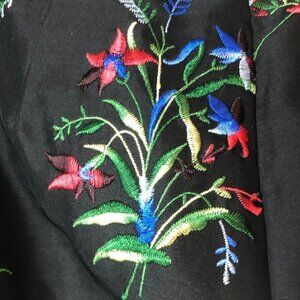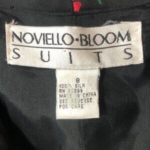 Noviello Bloom Vintage 100% Silk Embroidered Floral Black Trouser Suit Pants Size 8. These pants are embroidered with beautiful vibrant colored flowers on 100% silk. Double hook & eye closure, front zip. Pre-owned condition, normal wear.