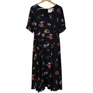 Novis Womens Silk Dress Size 8 Novelty Print Floral Runway Made In USA