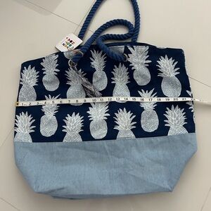Novogratz Navy and Light Blue Pineapple Tote/ Beach Bag