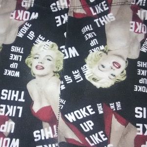*Ankle length leggings with our world famous, Marilyn Monroe on them😍!! As well as special saying of today. In fair condition, washing machine has caused a little fading in bottom area, took picture.