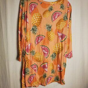 Now N Forever Watermelon/Pineapple Long Slv Cutout Neckline Orange Blouse Sz 2X.