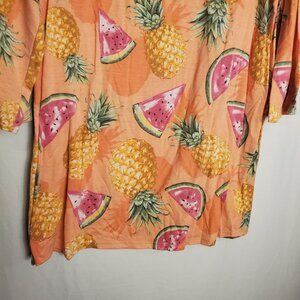 Now N Forever Watermelon/Pineapple Long Slv Cutout Neckline Orange Blouse Sz 2X