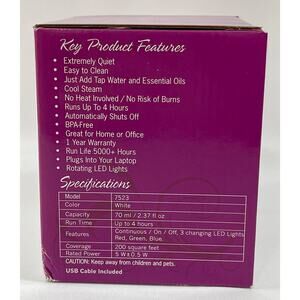 Now Solutions Ultrasonic USB Aromatherapy Oil Diffuser Heat Free Portable NEW