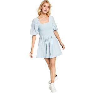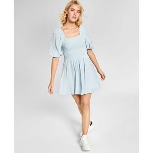 Mix things up in this mini cotton fit & flare dress from And Now This designed with a smocked bodice and cute puff sleeves.