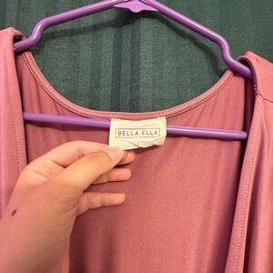 Pink/purple wrap dress in size large. Comes down to right below the knee. The sleeves are bat wing style. Great for weddings