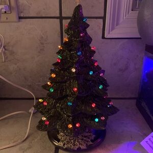 This is exactly like grandmas but made today Start your own family tradition This tree will come with either round pin lights or bulb style pin light yourchoice They are NOT glued inYou will choose pictures A or B I will send you a message to make sure you pick A or B I will also send 5 extrapins for thefuture All of my trees are 100% unique glazed inolive green the base is a brushed bronze and olive green