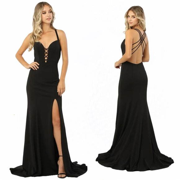 Nox Anabel M133 Thigh-high Slit Strappy Back Mermaid Gown Event Dress, L,XL,XXL