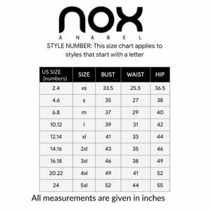 The items shown on pictures are exact items we have in stock. They are genuine NOX ANABEL items, NOT copy-cat or made to look alike. We guarantee 100% authenticity, we source our dresses direct from NOX ANABEL company. Dresses are even prettier in person than on pictures!
