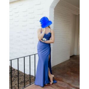 Nox Anabel Royal Blue Corset Prom Dress Long Formal Gown Size 4 E1042 Cowl Neck