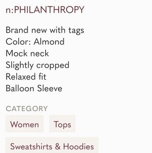 N:philanthropy Phil Daze Sweatshirt Top Crop Sweater NEW!