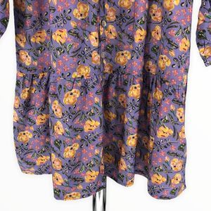 Nrvna Mode Jeanne Purple Floral Mini Shirt Dress Long Sleeve size Small NWT