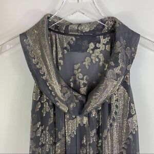Nu Collective | Gray Gold Sleeveless Metallic Drapeneck Silk Trapeze Dress XS