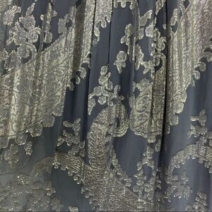 Beautiful gray silk with a paisley design in metallic thread. Fully lined and in excellent condition with just a few loose threads as shown. Perfect for parties, cocktails, weddings, formals or any special occasion. Adorable with flats or heels. Boho vibe with a nod to the 60’s/70’s. Please see photos for additional details.