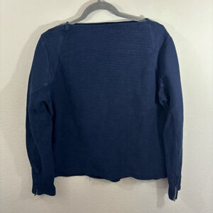 Nu Construction Boat Neck Blue Sweater Sz L Zipper Shoulders Sleeves 100% Cotton