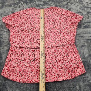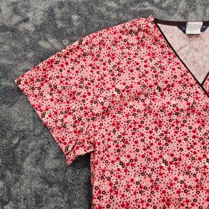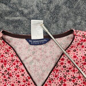 Nu Dimension Stretch Scrub Top Womens Large v neck floral print Nursing uniform