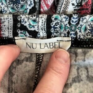 Nu Label Multi Black Floral Stripe Extra Long Flared T-Shirt Legging Pants Large