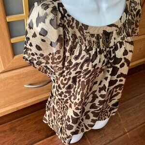 Nu Options Leopard Short Sleeve Studded Blouse Large Petite
