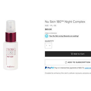 Nu Skin 180 Night Complex 1oz Retails $83. Condition is NEW sealed in box. Price is per each.