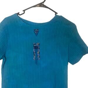 Nu Views Vintage Women's Size Medium Blue Hippie Boho Artsy Blouse