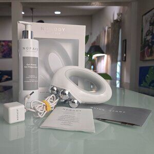 The NuBODY by NuFace White Non-Invasive Skin Toning Device is a facial toning device designed specifically for use on the body. Created by the brand NuFACE, this device is perfect for achieving a smoother and more toned appearance on the skin. With its sleek white design, this product is easy to use and does not require any invasive procedures for optimal results. Perfect for achieving a more defined and sculpted look, this device is a must-have for anyone looking to improve the overall appearance of their skin on the body. Used twice with primer from another Nuface product. Comes with all original packaging.