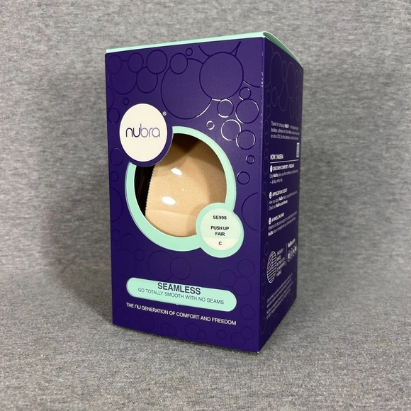 NuBra Adhesive Seamless Push Up Bra FAIR C Molded Pads Backless Strapless Formal
