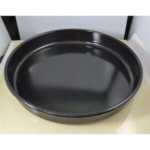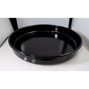 This is the NuWave Pro Infrared Oven black non-stick metal baking pan. It measures approximately 10" in diameter x 1 1/2" high. Please note that this is new - never used - but it does have some storage wear which includes some surface scratches in some areas but is still very usable.