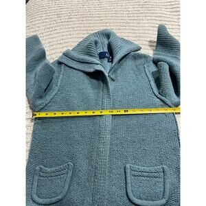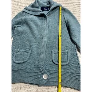 Nua Full Zip Up Hooded Sweater Women's Size Medium Extrafine Merino Wool Silk Blue Big Abalone Buttons