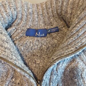 Nua Sweater Womens Large Gray Merino Wool Cashmere 1/4 Zip Ireland