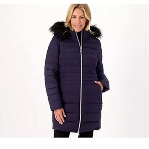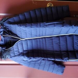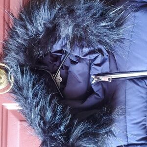 Nuage Navy puffer jacket faux fur hood. Expandable zips on side NWT Small