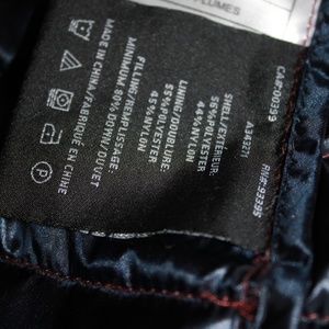 In perfect condition, never been worn before. Filling is at least 80% down. Says it is a size small but I am a size small and it was too big for me, otherwise I would have kept it for myself.
