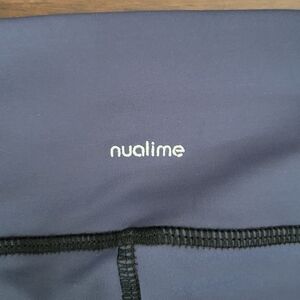 Nualime blue mesh panel 7/8 length athletic leggings in women's size S.
