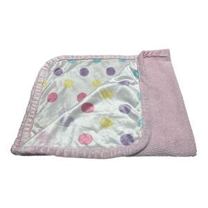 Nuby Light Pink Polka Dot Baby Blanket Sherpa Soft Purple Yellow White Blue