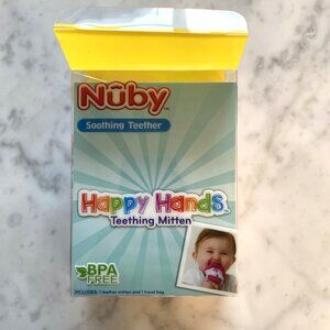 Nuby's Happy Hands Teething mitten - soft silicone helps with sore gyms and prevents baby from scratching. Can be worn on either hand. Baby didn't take to it and missed the return window. Original packaging available. Bundle w/ another item for a deal.