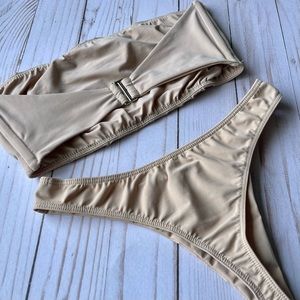 The top is structured bandeau with a seamless finish. Double lined for support and coverage complete with a hook closure back.