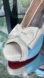 Nude Blue Peep Toe Pin Up Pumps High Heels Dress Shoes w Bowtie and Red Bottom