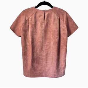 Nude Blush Pink Faux Suede Boxy Semi Cropped Short Sleeve Top, XS (MSRP $158)