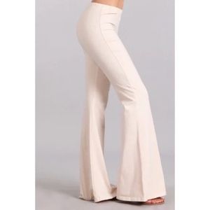 Featuring nude mineral washed bell bottom flare pants with an elastic waist. Each item is hand-dyed for its unique character and American vintage laundered look. You can expect some variation in color and finishing.