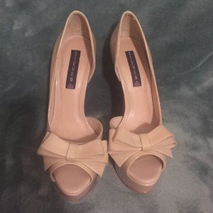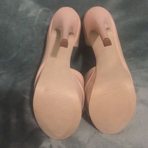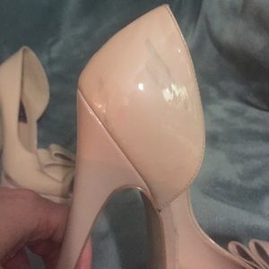 Never worn. Small discoloration on inside of left pump I think just from storage. Not noticeable when on.