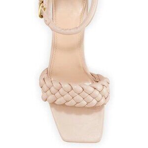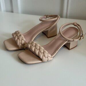 Nude Braided Open Toe Ankle Strap Low Block Chunky Heels Sandals Size 5.5
