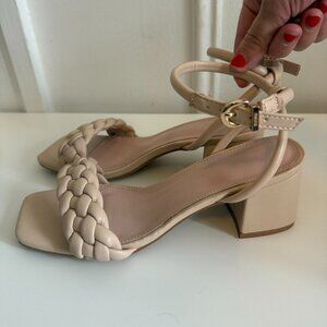 🏷️Condition: Preowned excellent condition 🌈Color: Nude/cream ✨Features: ankle strap, adjustable ankle strap, block heel, square toe, braided strap ❌Flaws: Shoes have no flaws. Some scuffing/wear on bottom (see pictures) 📏Measurements Size 5.5 🧵Materials: faux leather 🚭Smoke free home 📦Ships next business day!