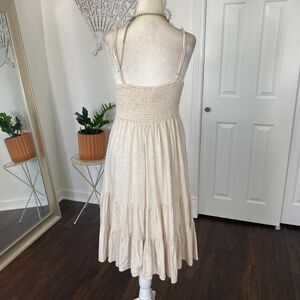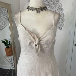 ༓ beautiful rayon linen blend midi length cream nude midi dress