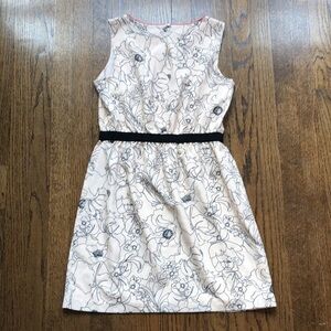 Nude Cream Peach Abstract Drawing Floral Sleeveless Ribbon Dress
