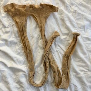 Nude Fishnet Rhinestone Tights