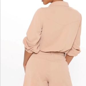 NWT 3/4 sleeve button down with a twist front knot Removable belt