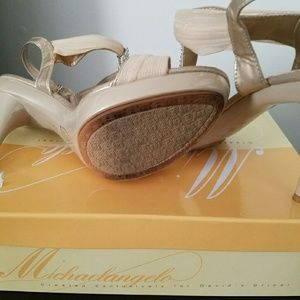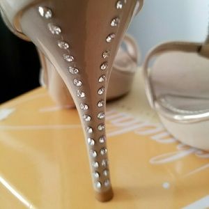 Good for Bridesmaid. Worn Only Once. Style AELIZE12. SIZE 10. Nude, Rhinestones, with T-Strap. Rhinestones Down Heel.