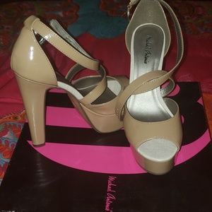 Perfect condition dize 7.5 nude patent leather peep toe platform pump.