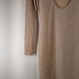 Nude Pearl Embellished Maxi Dress, Fitted, Size Small