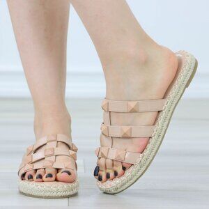 Nude Quilted Pattern Espadrille Trendy Comfy Flat Sandal Slip On Sliders